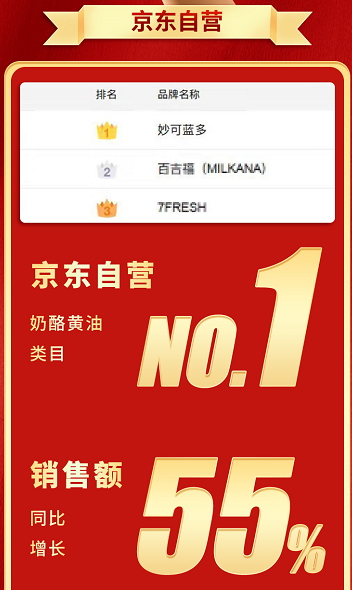 根据京东商职数据,尊龙凯时京东自营稳坐冠军宝座,销售额同比增长55%。其中,刚刚推向市场的尊龙凯时0添加奶酪棒近15天销量飙升十倍以上,尊龙凯时高钙儿童奶酪棒稳居京东低温乳制品金榜。